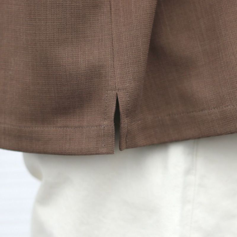 上質かつほんのり透け感のあるパナマ織り素材がもたらす軽やかな肌ざわりと絶妙な光沢感、上品さとリゾート感を絶妙に両立したデザインで、羽織るだけで洗練された印象に。
