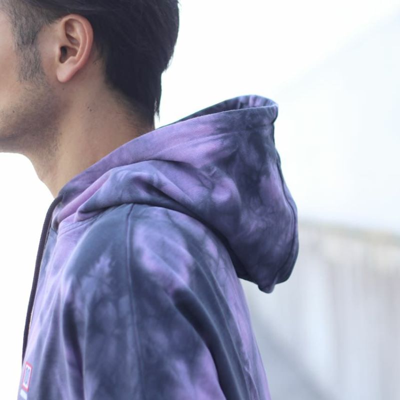 MEYBAの人気アイテムのタイダイ柄シリーズのスウェットフーディ―。