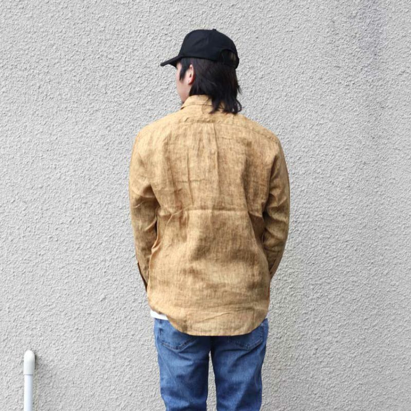 麻素材ですが、バイオウォッシュが施されているため、特有のチクチクや毛羽立ち、肌触りの硬さなどは皆無。とても柔らかく仕上がっています。