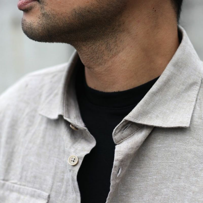 ベストセラーであるスリムフィットのシャツは春夏らしい清涼感のあるリネン素材を使用した1着。