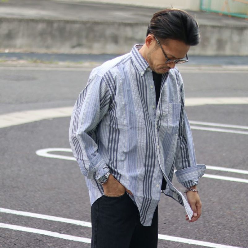 JOHNBULL/ジョンブル ストライプパッチワークシャツ FY241LSC07 袖シャツ グリーン ストライプ パッチワーク