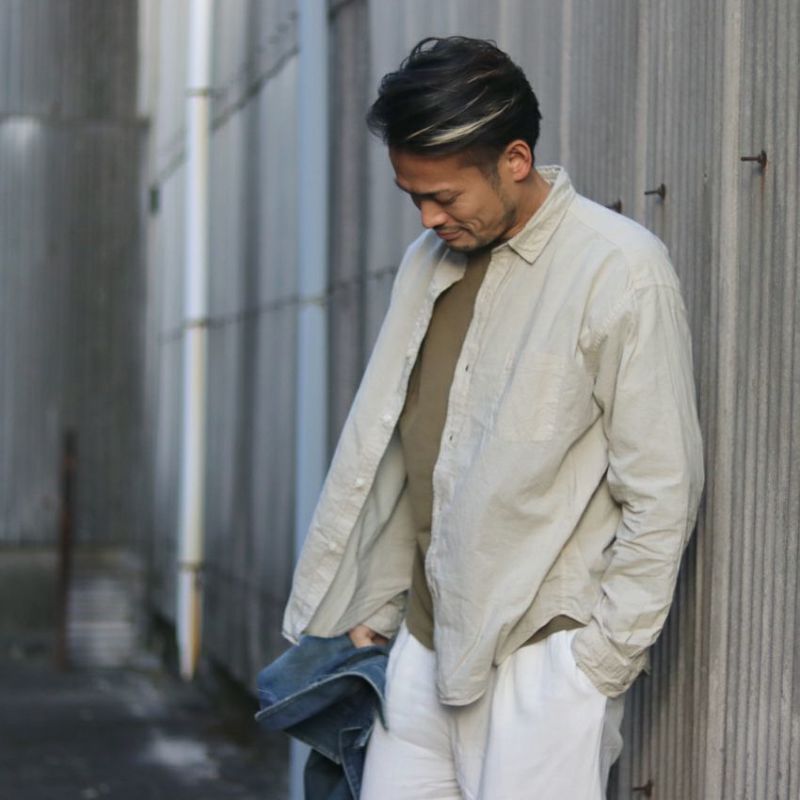 やれ感のあるナチュラルな風合いのガーメントシャツ