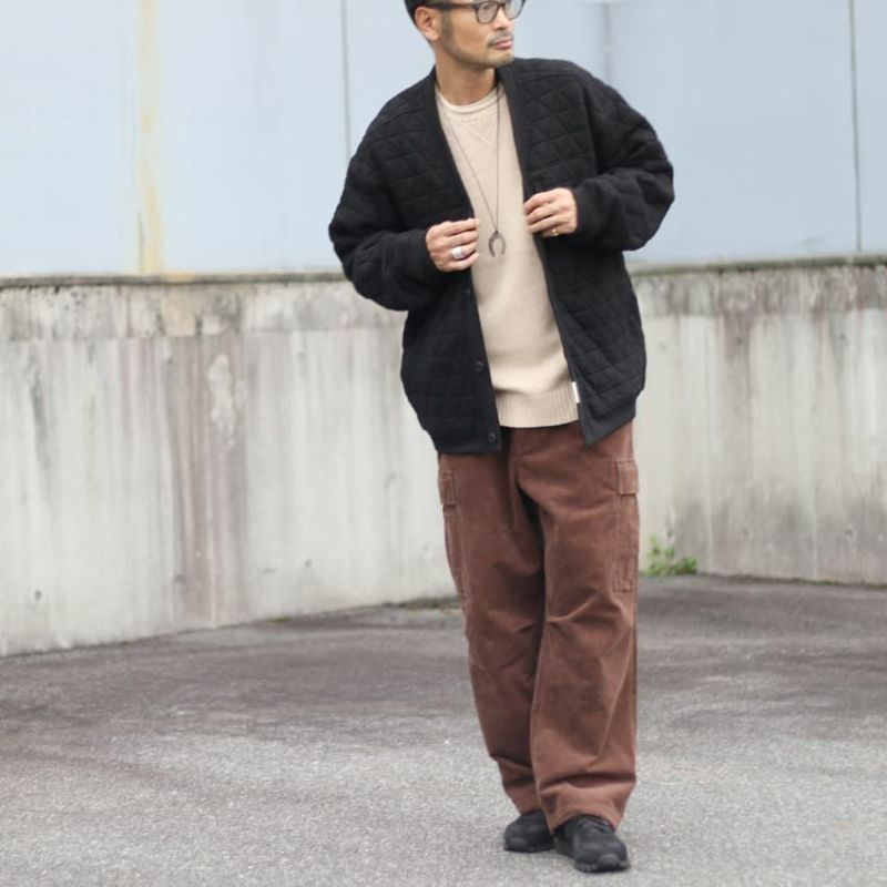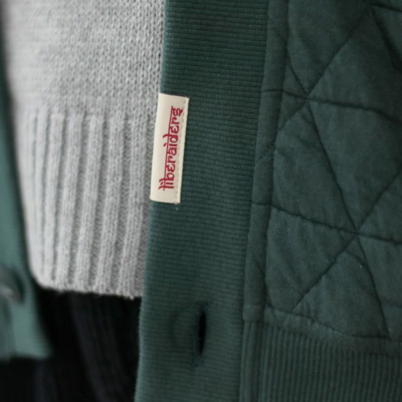 三角形のステッチを入れたオリジナルキルティング生地のカーディガン。