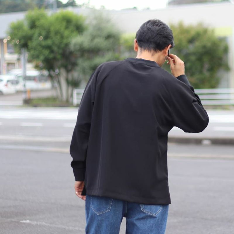 スリーブデザインは、前身頃はセットイン、背面をラグランスリーブにすることで、前後で見え方に変化を付けています。