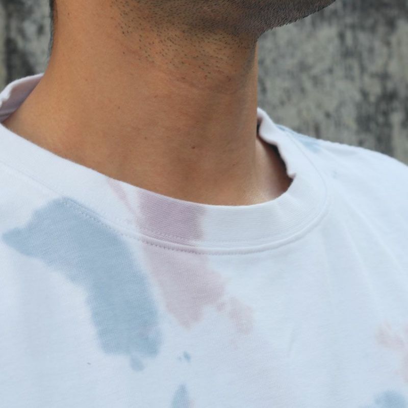 ペンキが飛んだようなタイダイ染めが珍しく、他と被らない一着になっています。