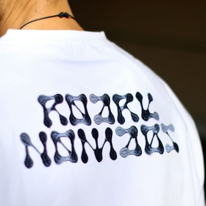 大胆に刺繍された背中のROARK NOMADSグラフィックが特徴的なH/W L/S Tシャツ。
