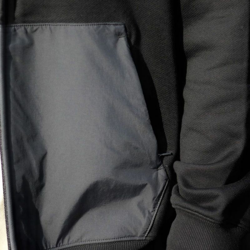 フードとポケットを大胆に同色のナイロンで切り替えたユニークなアイテムは着回し力が高く、春や秋などの中途半端な時期でも大活躍するライトアウターです。