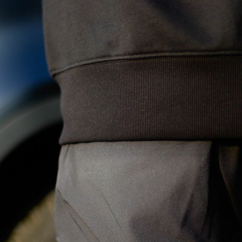 裾にはポリウレタンを混ぜることで洗濯やハンガーでのヨレをなくすタフな作りとなっています。