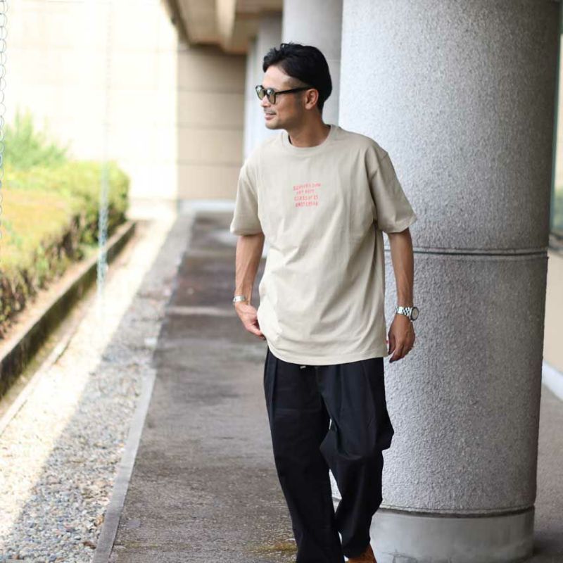 生地は程よく光沢があり、ロゴTシャツでありながら大人らしい雰囲気もまとっています。