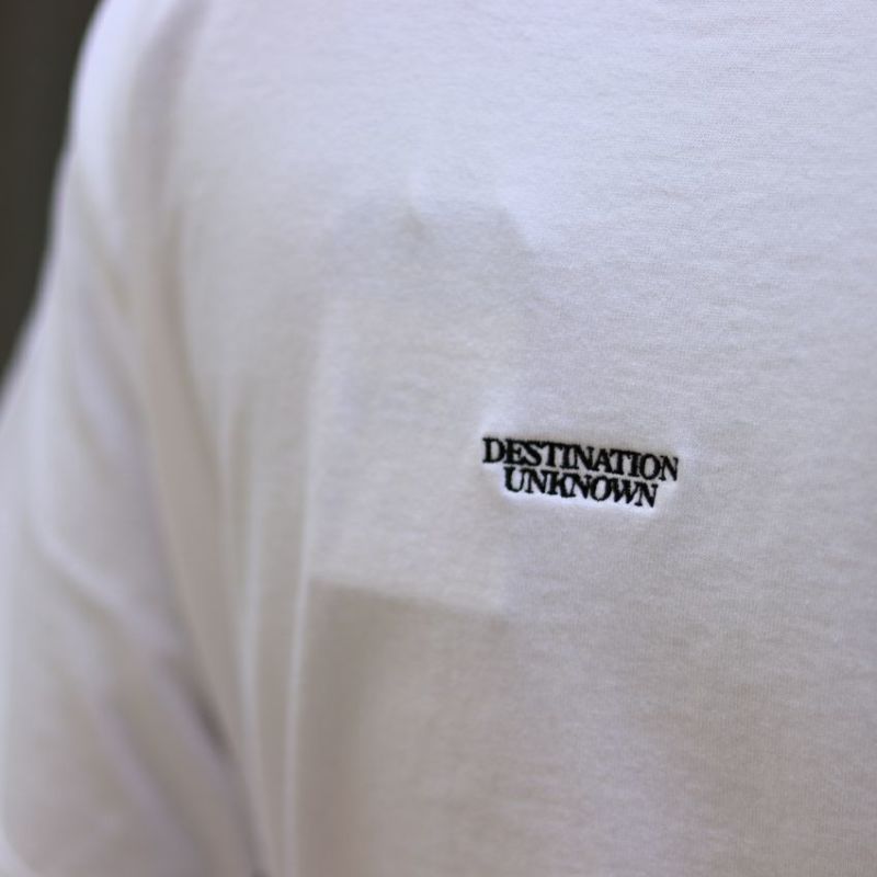 背中にはDestination unknownの刺繍、左前裾にTYVEK LABELが付きます。