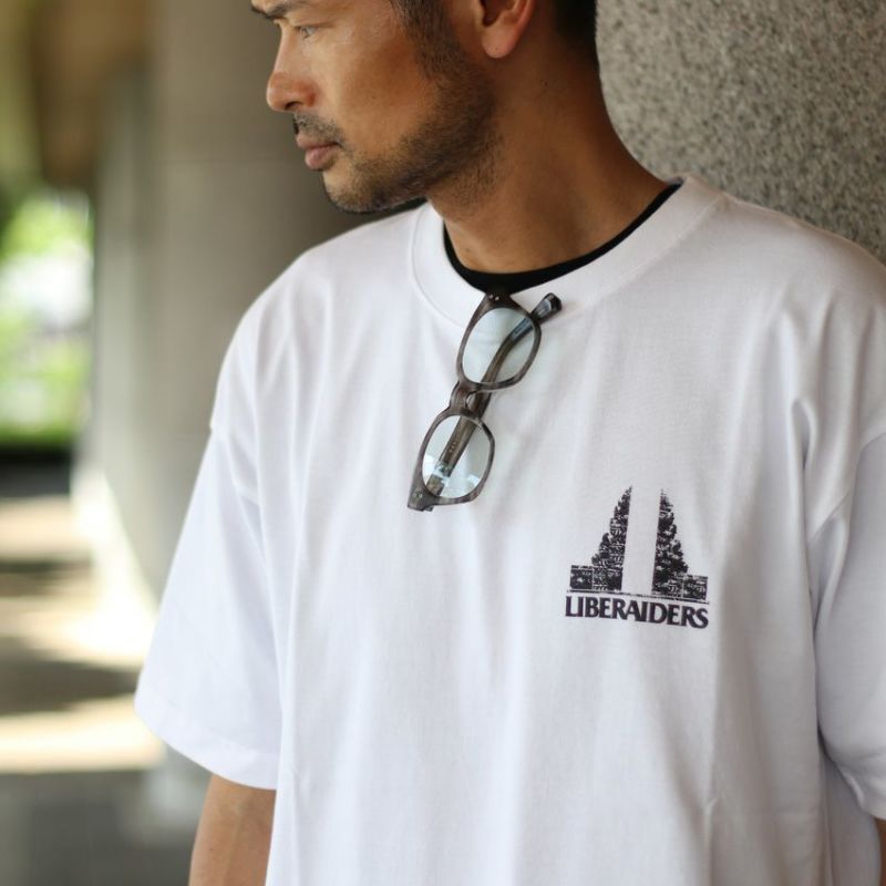 ロゴのプリントの中にさり気なく入る隠れた柄はリベレイダースならではの遊び心。