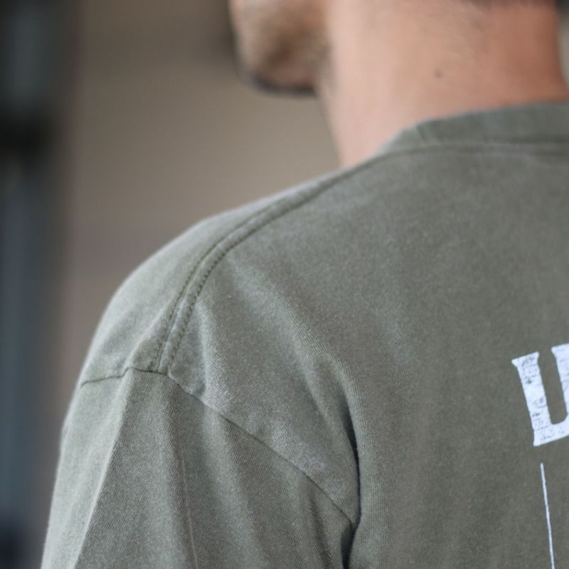 全体にはパウダーフロスト加工を施し、絶妙な色落ち感と柔らかな起毛で、肌に心地よく、ヴィンテージライクな風合いを実現しています。