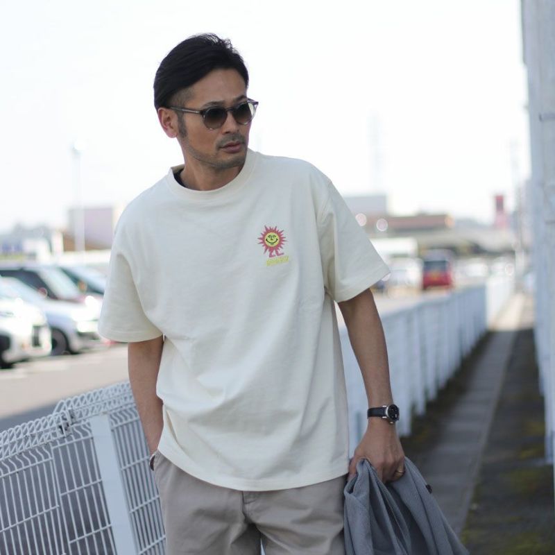 サイズ選びに関しては、普段着用されるサイズを選んでいただければ、少し方が落ち、身幅も程よくゆとりのあるシルエットになってます。