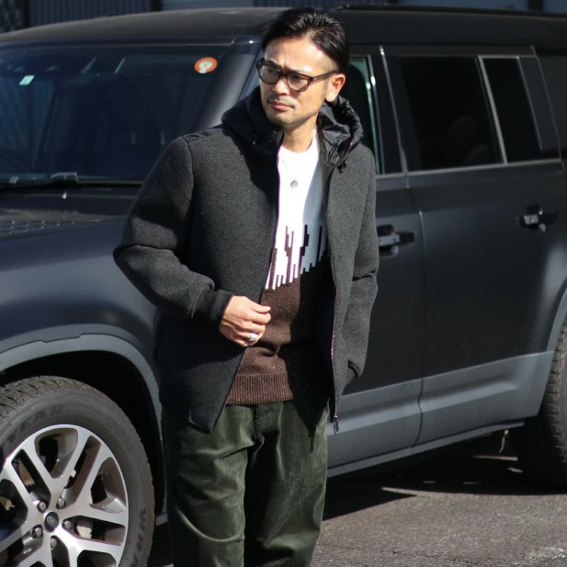 イタリアブランドSEINSEから、異素材コンビが魅力の中綿フードブルゾンが登場。