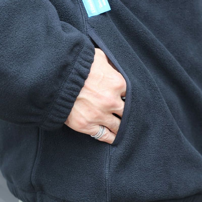 フロントには首元迄のジッパーを採用、ロゴ入りのプーラ―もポイントです。