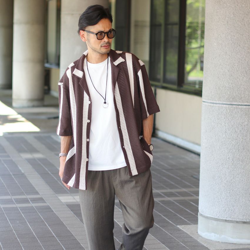 他の画像を見る I'M BRIAN/アイムブライアン ストライプメッシュニットシャツ IB10704 半袖シャツ ビッグシルエット オーバーサイズ イタリア 柄シャツ ¥ 33,000 税込 在庫切れ お気に入りに登録する