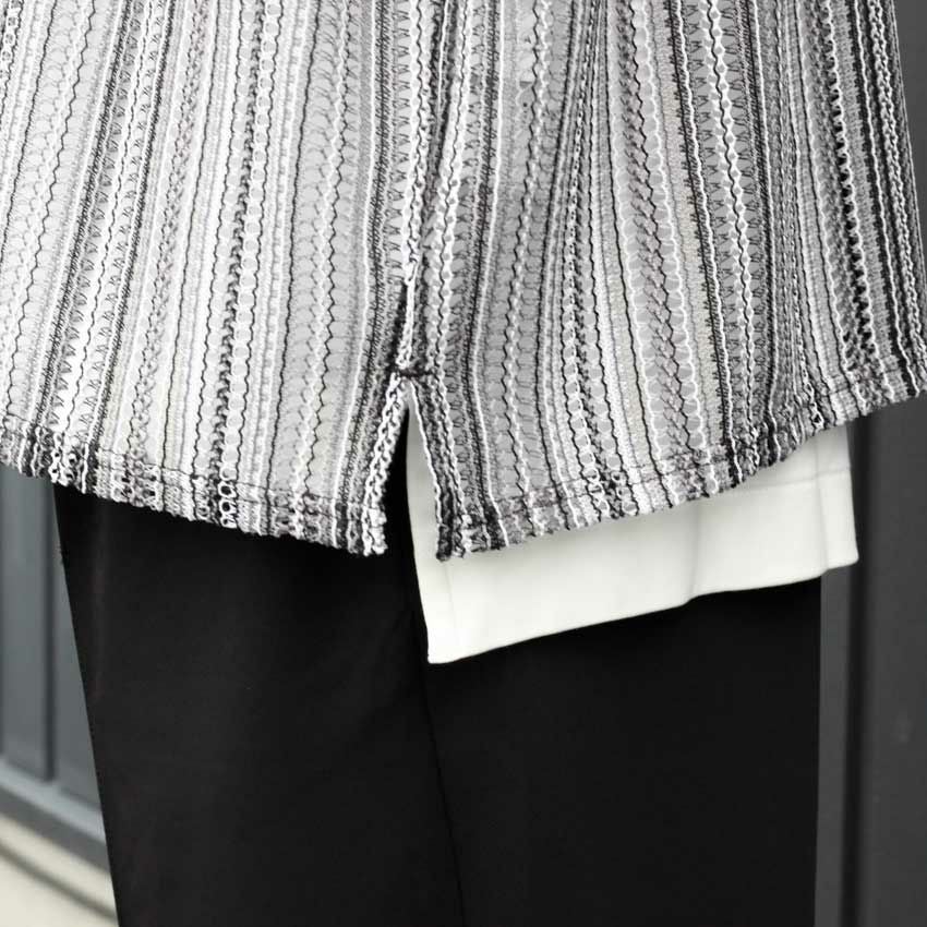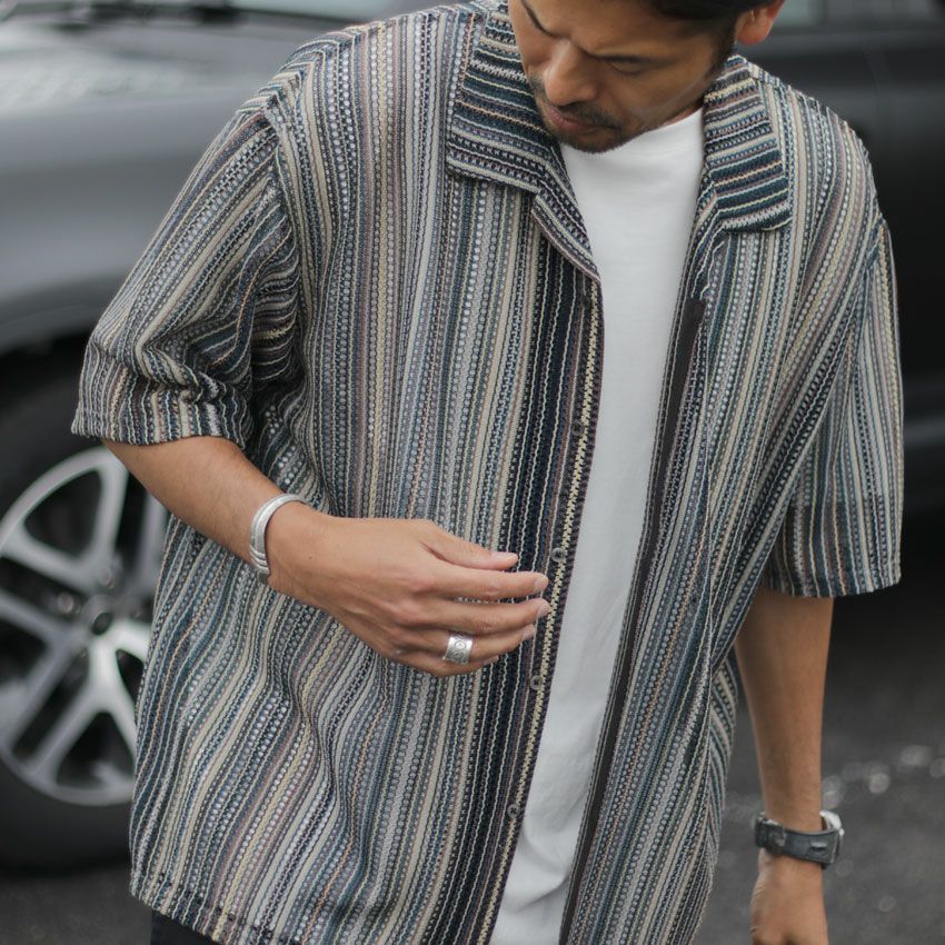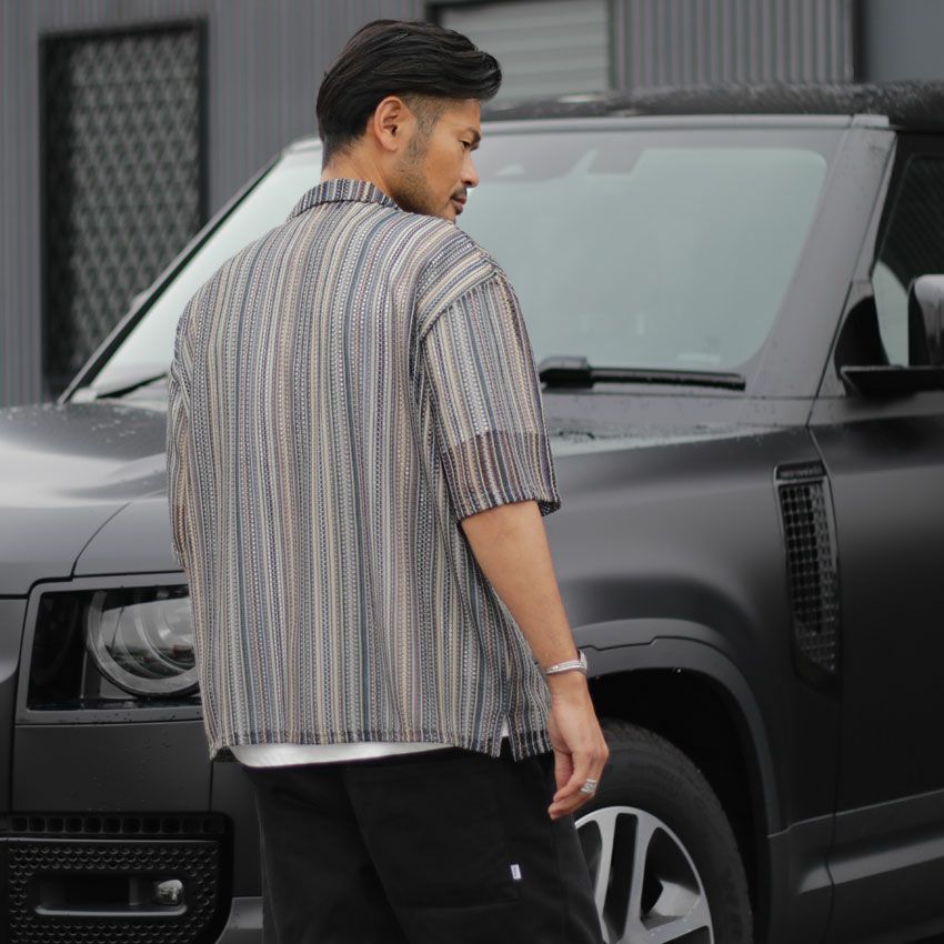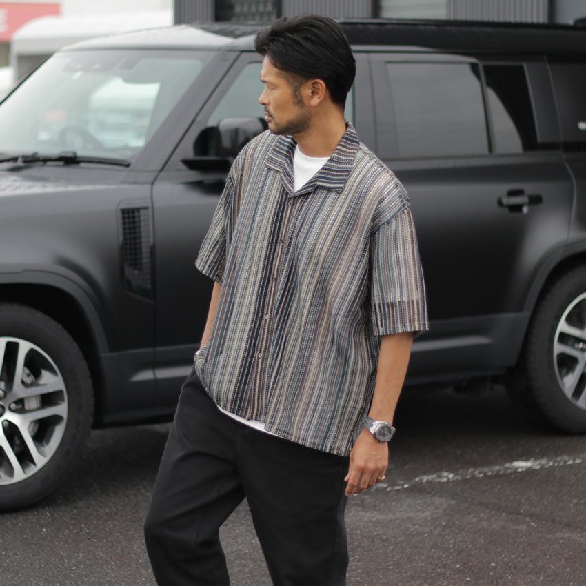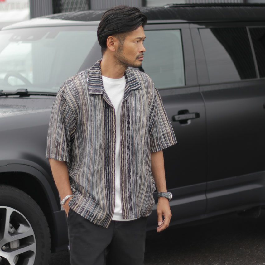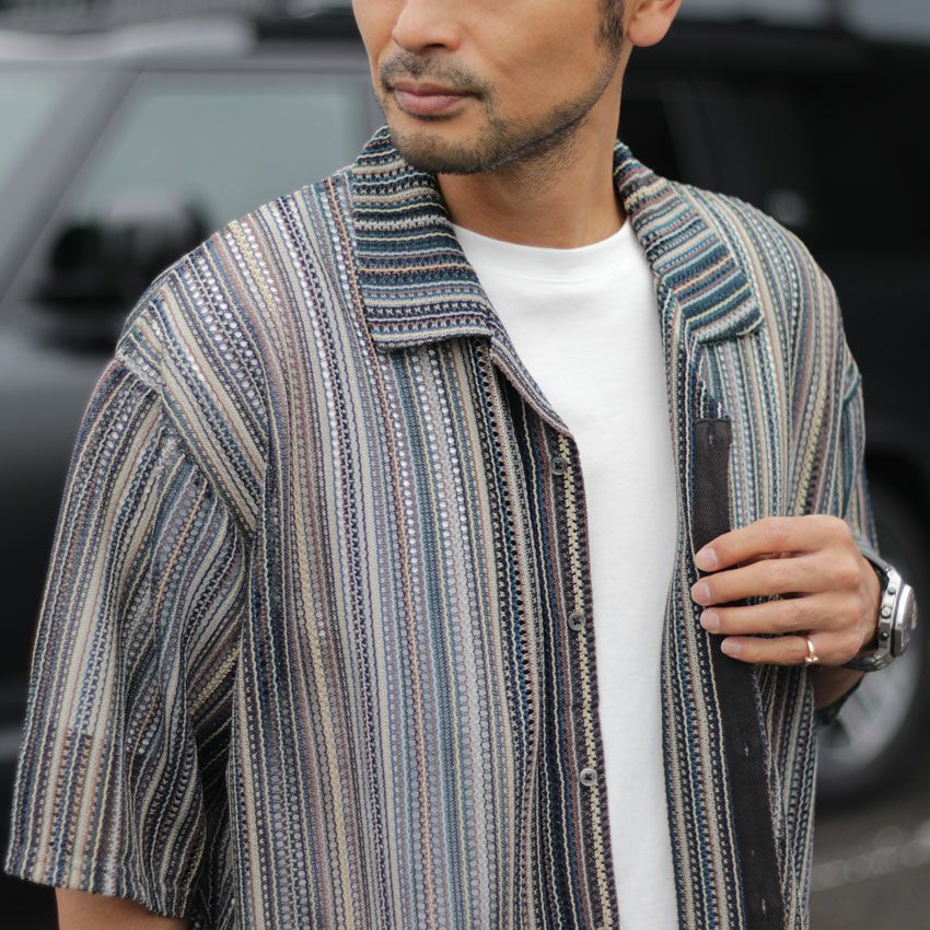 他の画像を見る DUAL VOICE/デュアルボイス ストライプ柄開襟半袖シャツ D24S-C092 メンズ 春夏 アウター ストライプ柄 メッシュ バルファレース 透け感 ¥ 8,800 税込 在庫切れ お気に入りに登録する