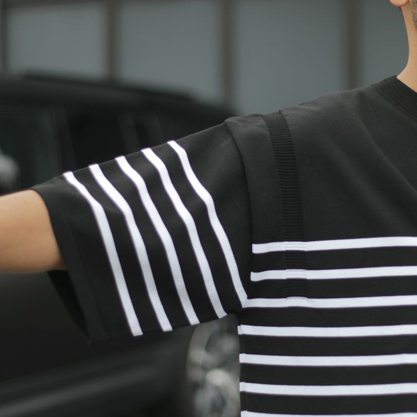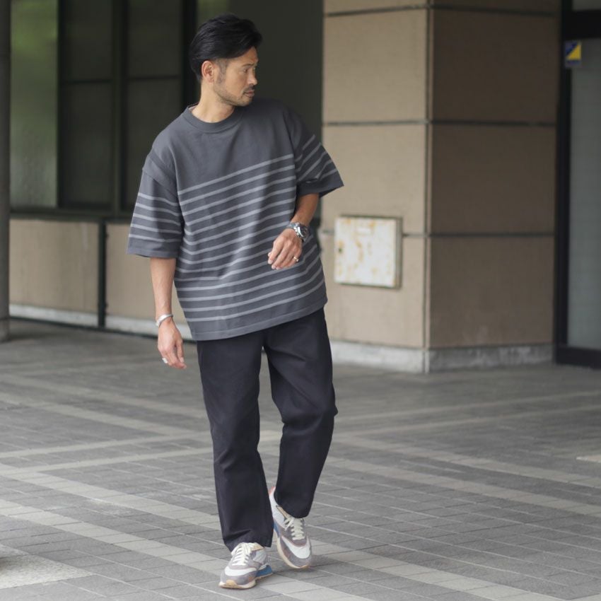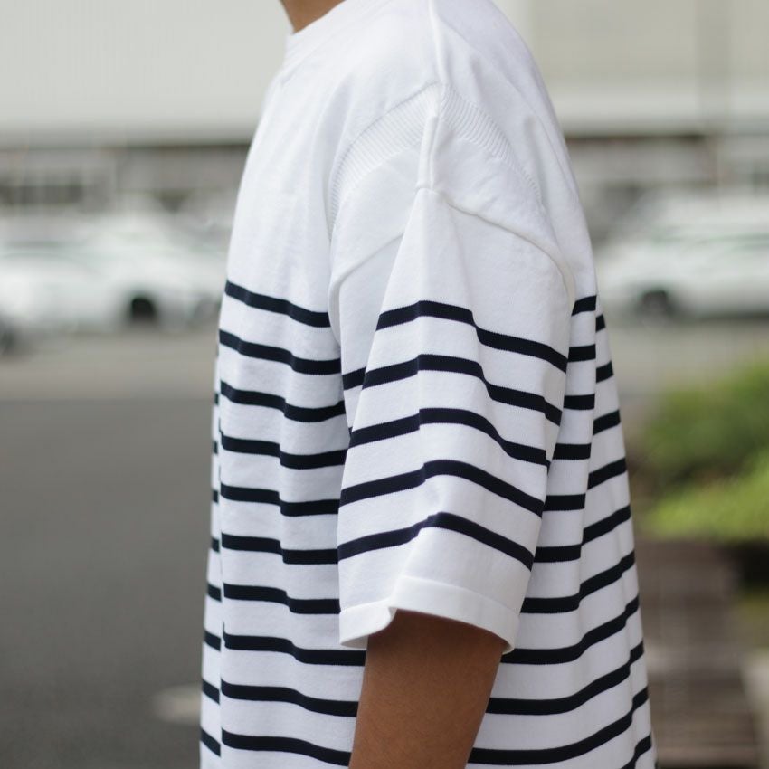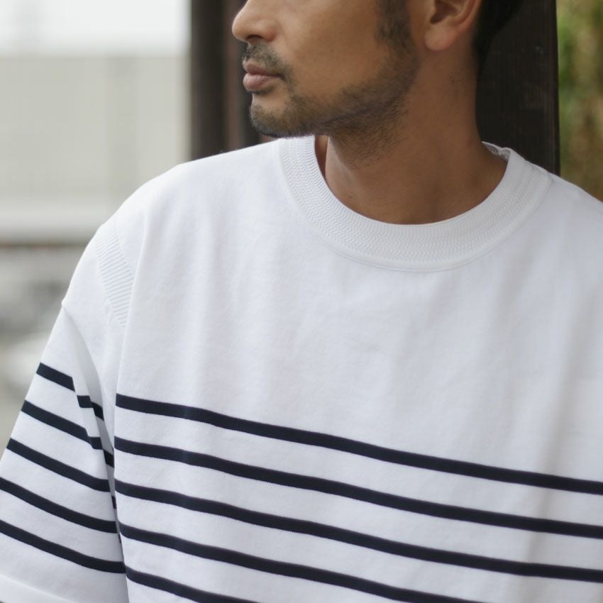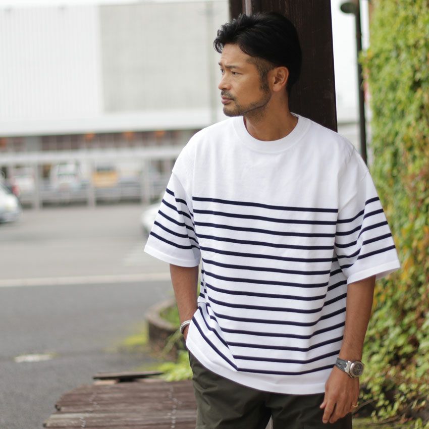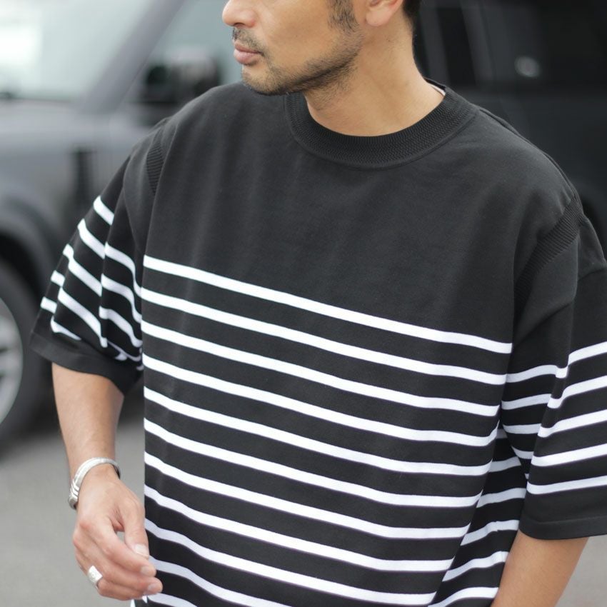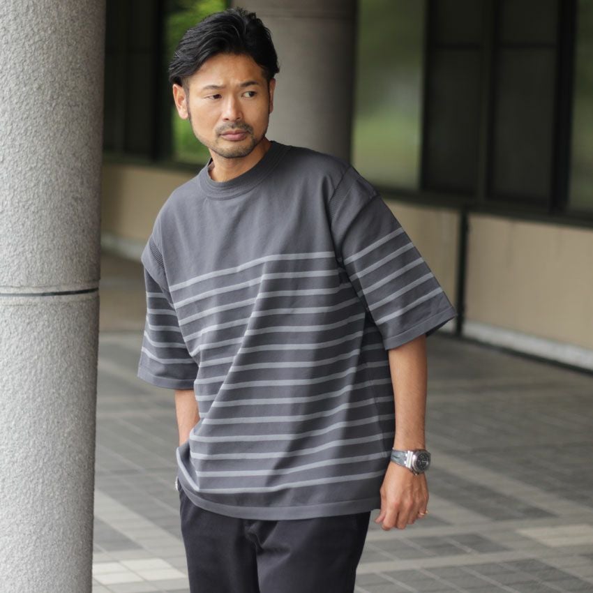 他の画像を見る FORTUNA HOMME/フォルトゥナオム エコテックボーダーニット FHKT-0146 サマーニット ポンチ 5分丈 半袖 ビックシルエット ¥ 9,350 税込 在庫切れ お気に入りに登録する