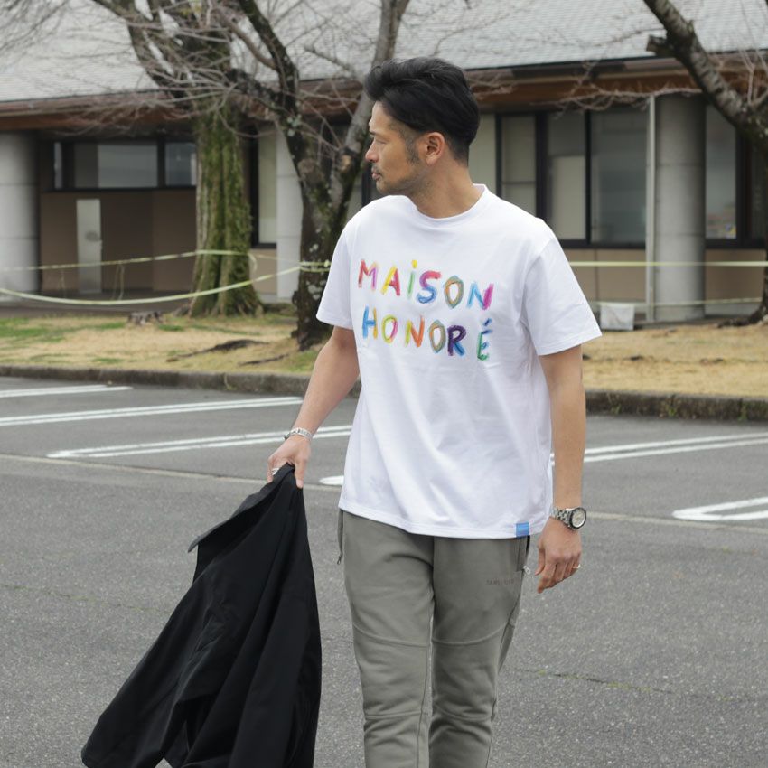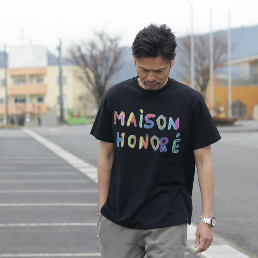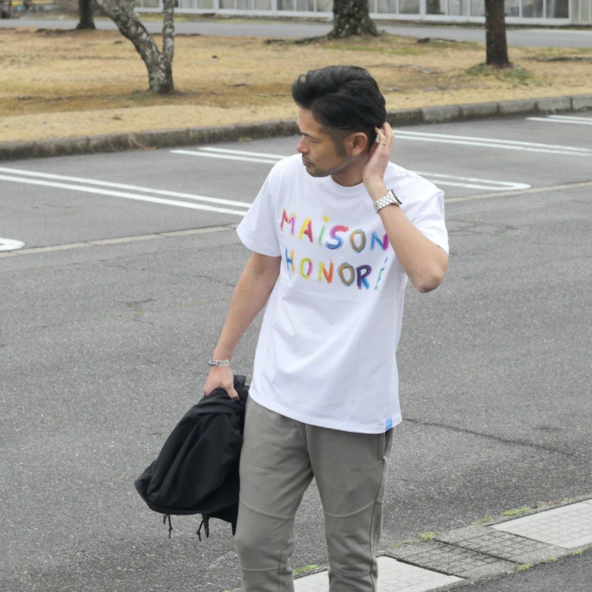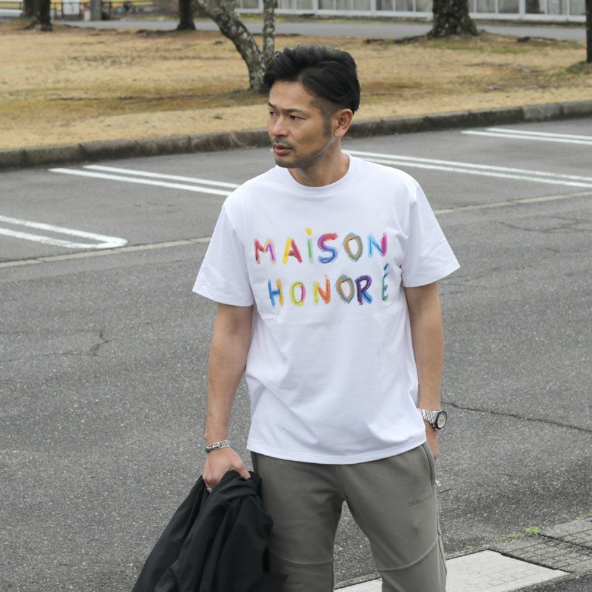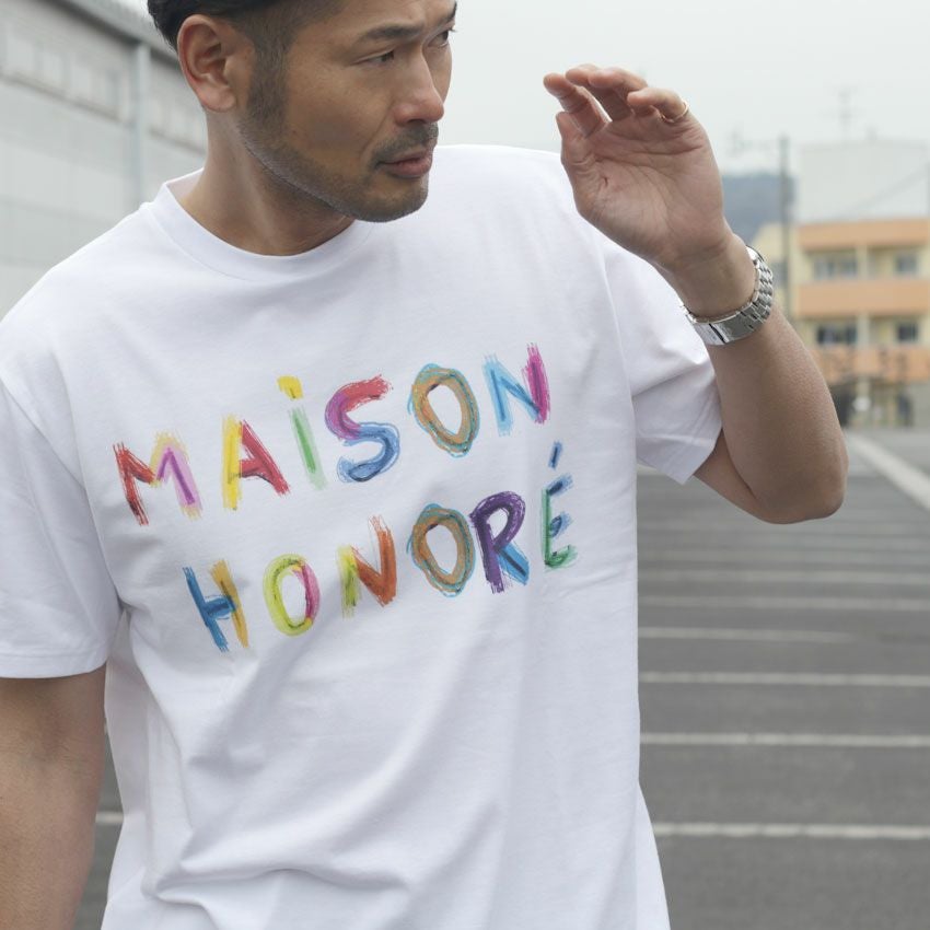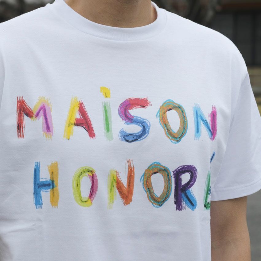 他の画像を見る MAISON HONORE/メゾンオノレ カラフルロゴプリントTee Justine フランス ヨーロッパ ロゴT プリントT 白T ¥ 17,600 税込 在庫切れ お気に入りに登録する
