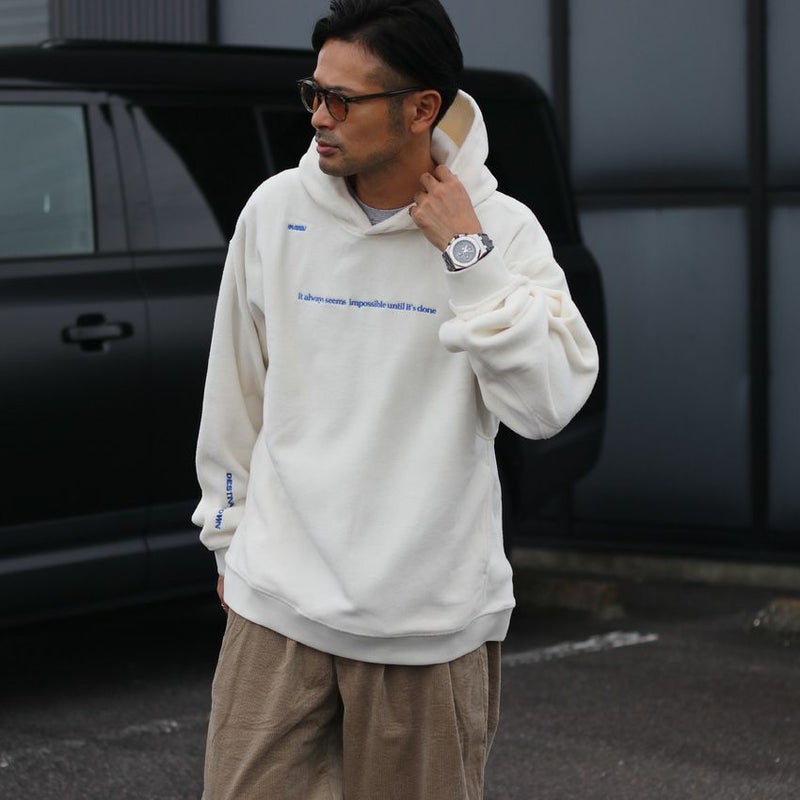 デザイン面では、フーディ全体に施された刺繍ディテールがアクセント。