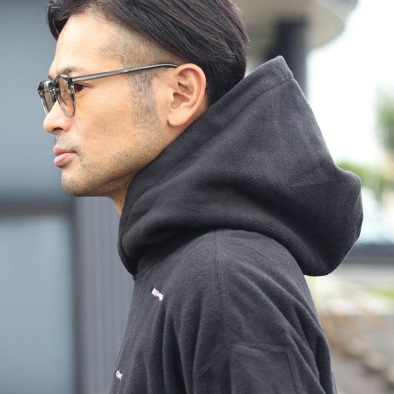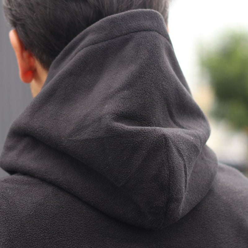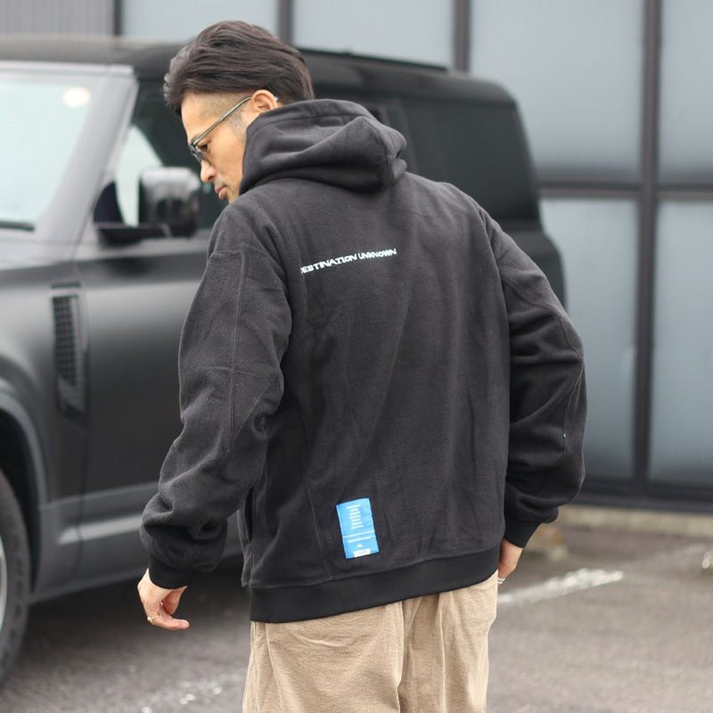 このフリースフーディは、単なる防寒具ではありません。軽さと保温性を兼ね備えた中肉厚のフリース素材を採用し、肌触りはソフトで滑らか。