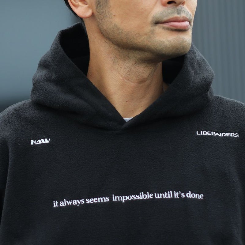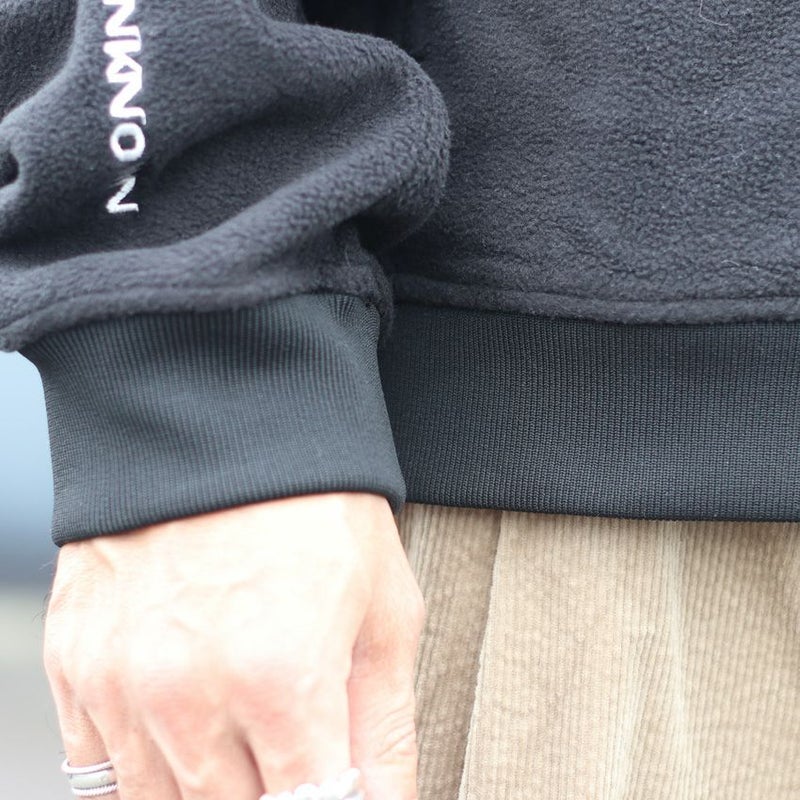 立体裁断×刺繍ディテールの洗練されたフリースプルオーバーフーディ。