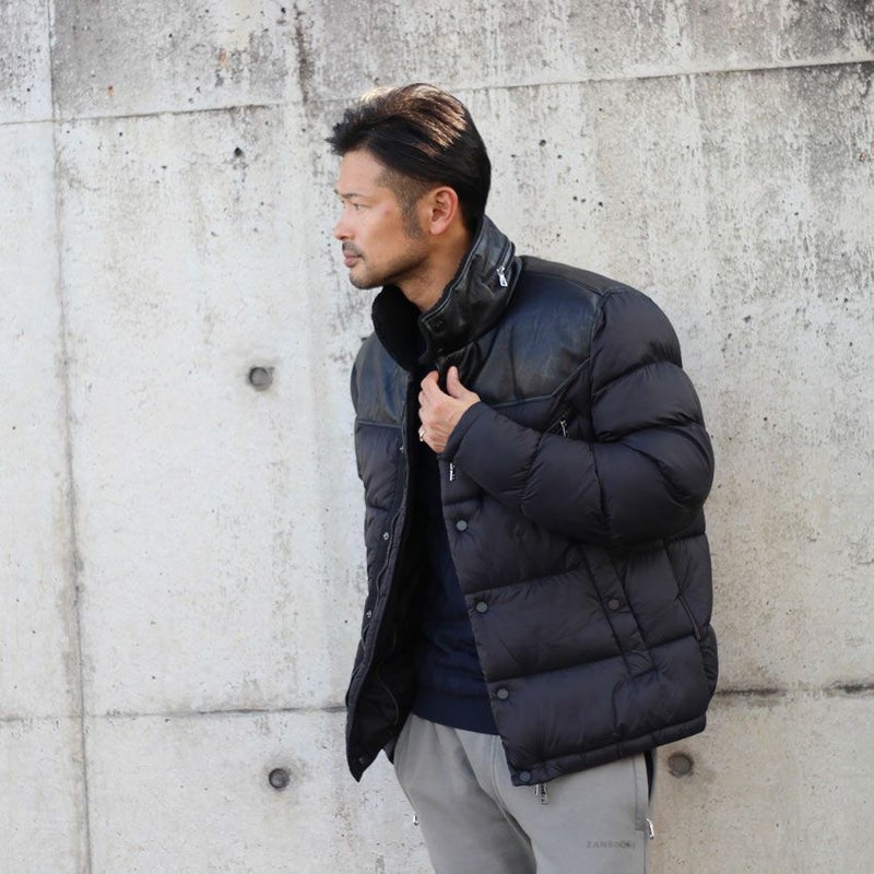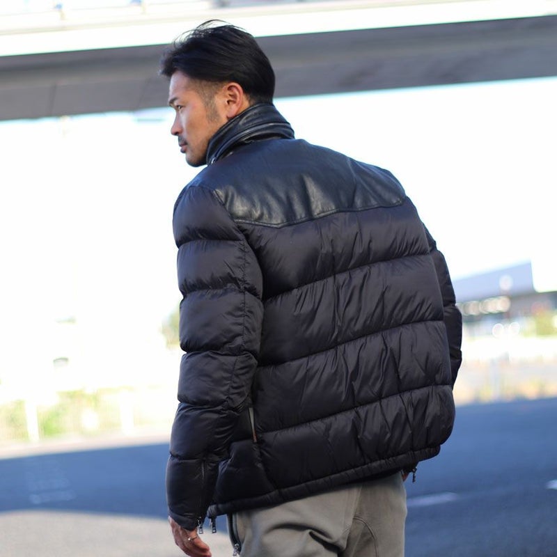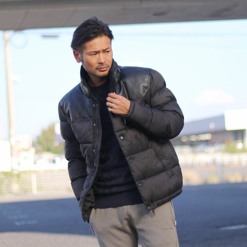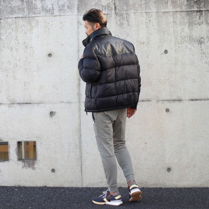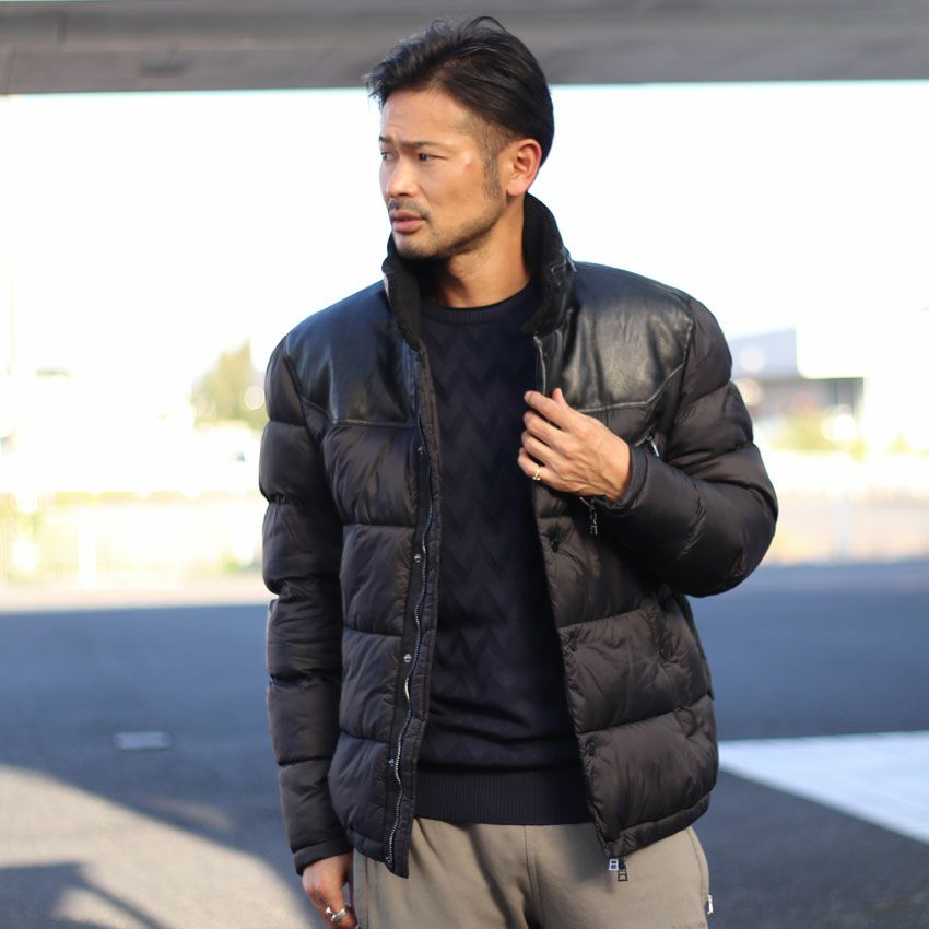上品なレザーとナイロン、どちらも程よい光沢感をみせ、大人らしいラグジュアリーな側面を見せてくれる1着です。