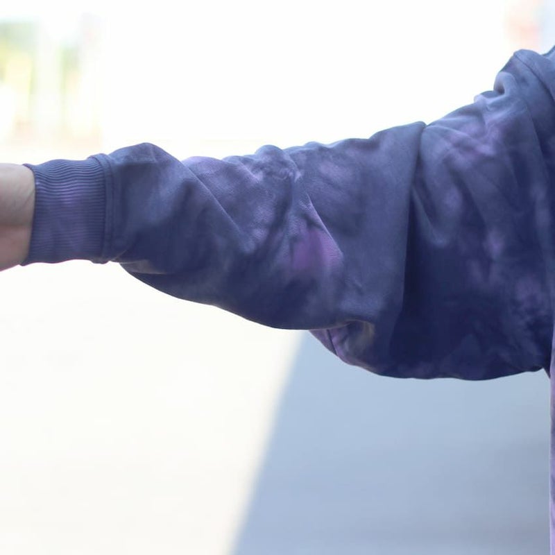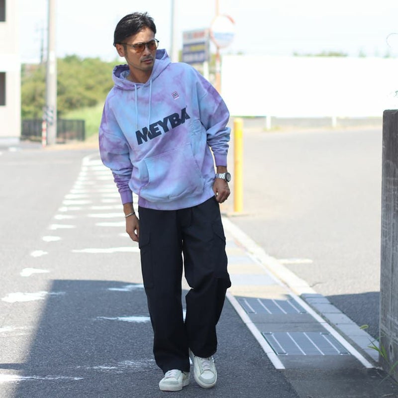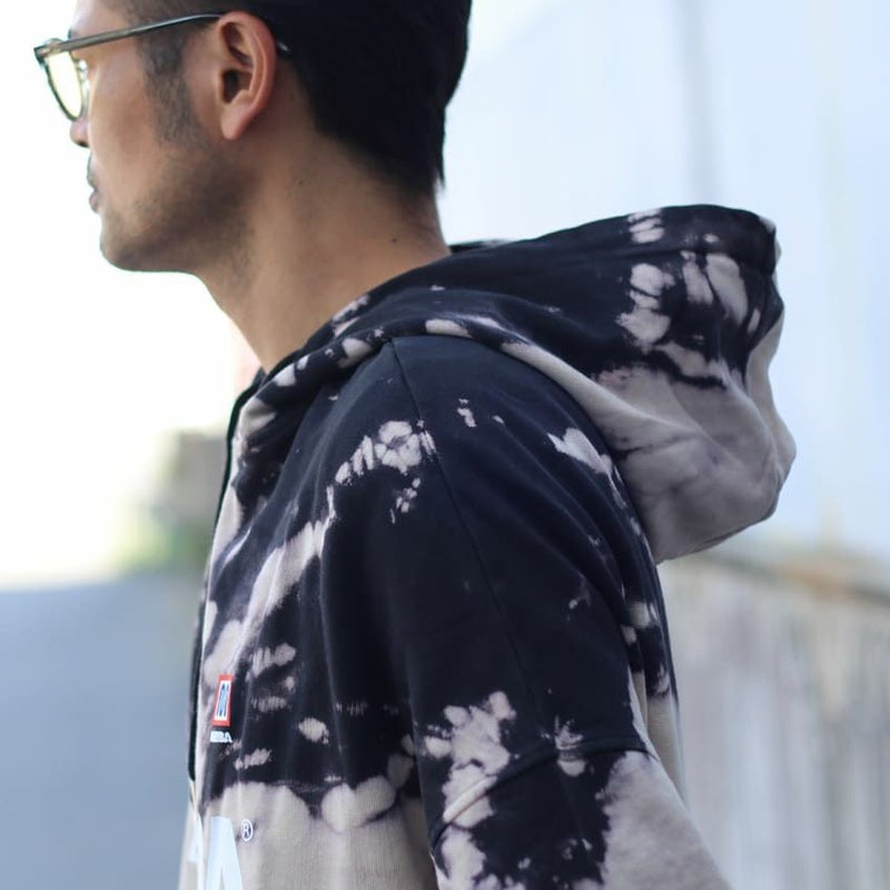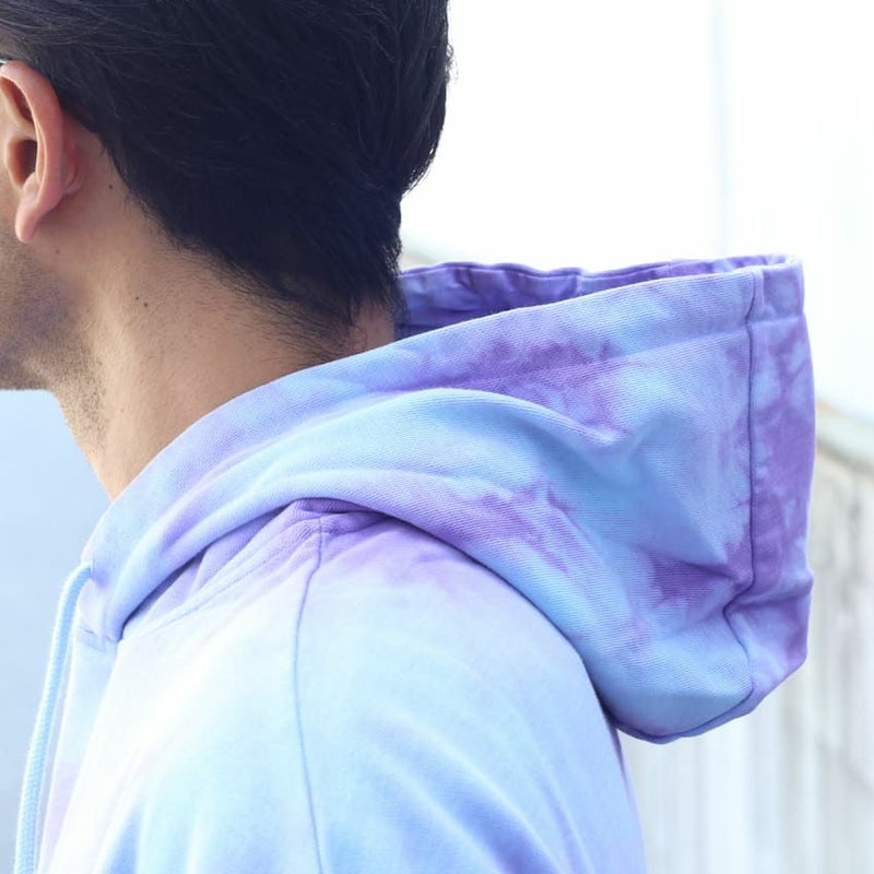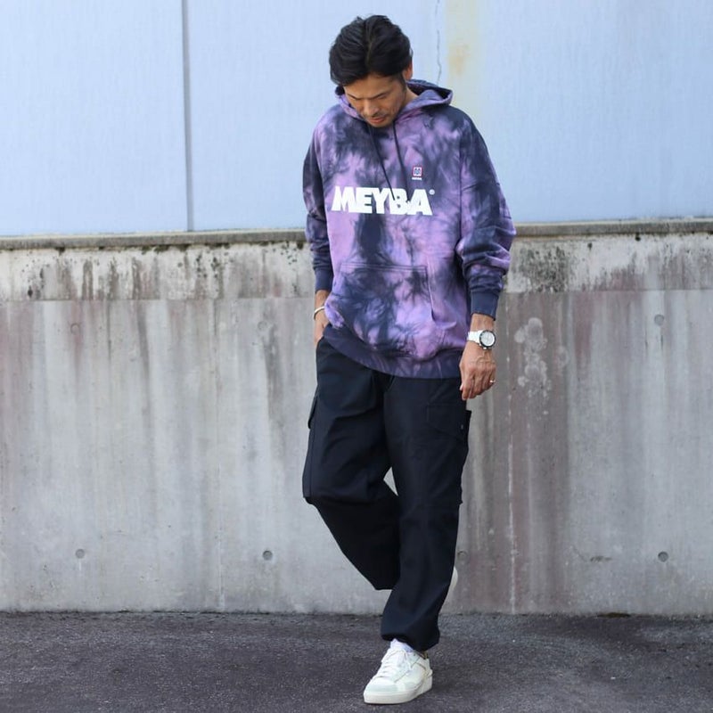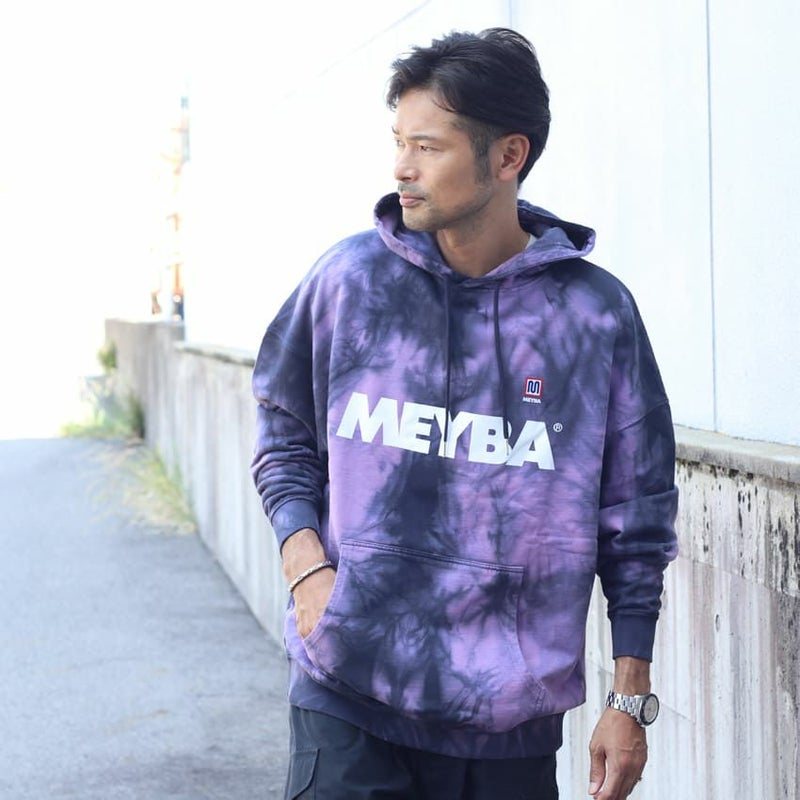 MEYBAの人気アイテムのタイダイ柄シリーズのスウェットフーディ―。