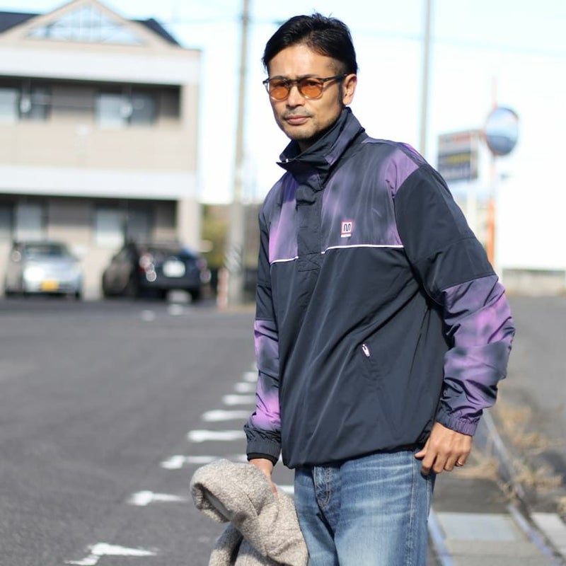 メイバトラックテープ、ブランドロゴ、切り替え、収納可能なフードとこだわり抜いたプルオーバージャケット。
