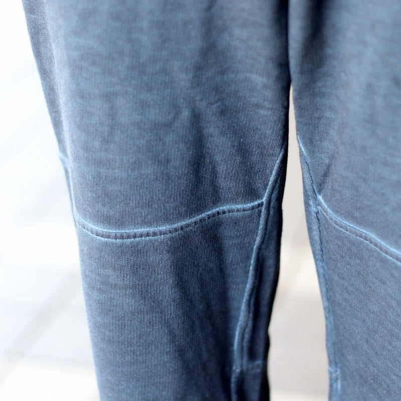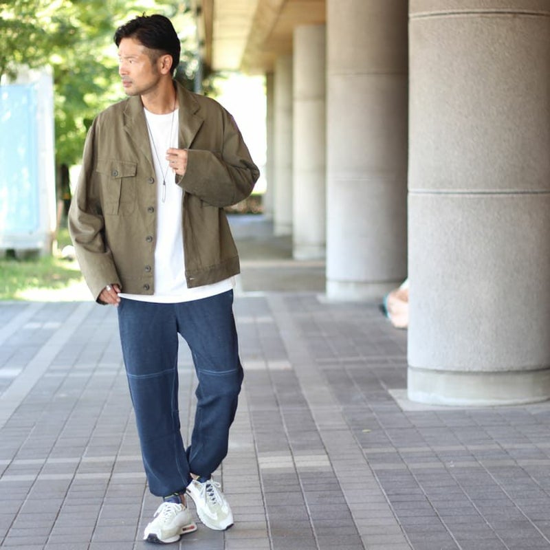 デニムのような色の濃淡を出すことでスウェット素材でも、カジュアルになりすぎず、お洒落なスタイリングに最適なデザインに仕上げています。