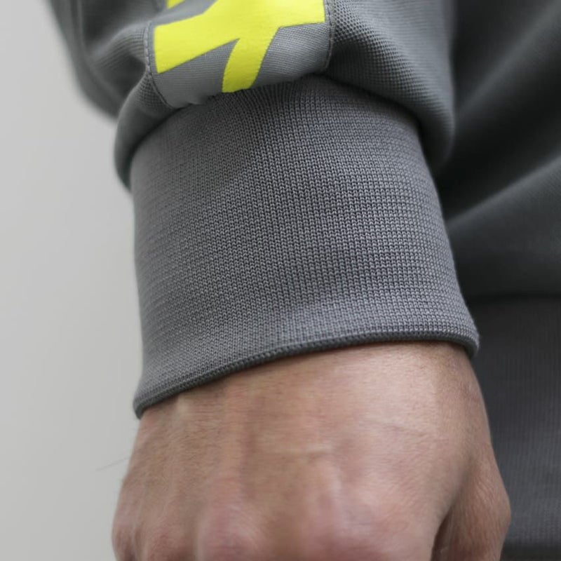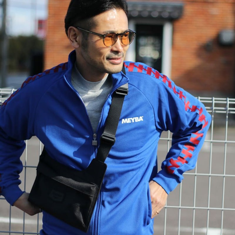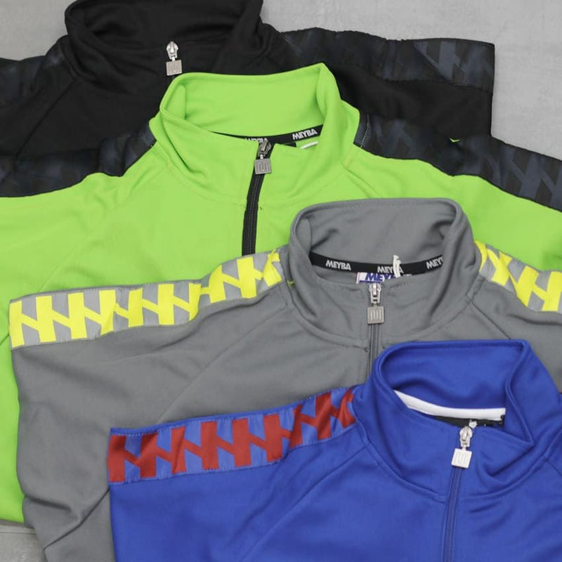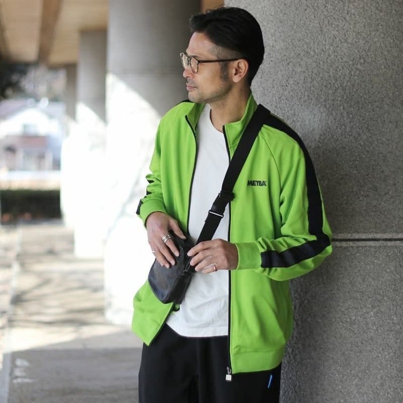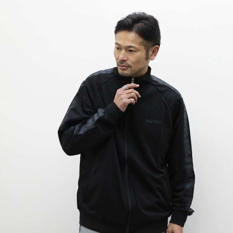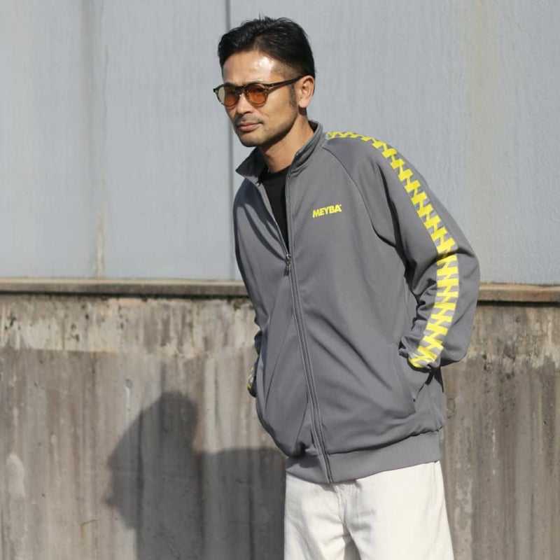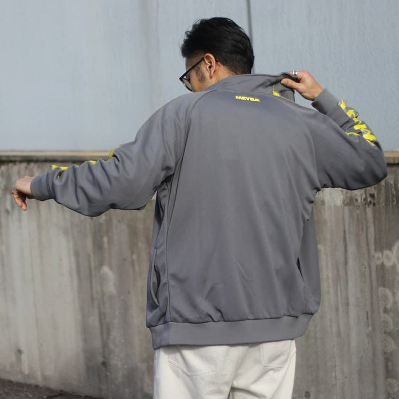 MEYBAトラックテープを肩から袖にかけてあしらいデザイン性をプラス。