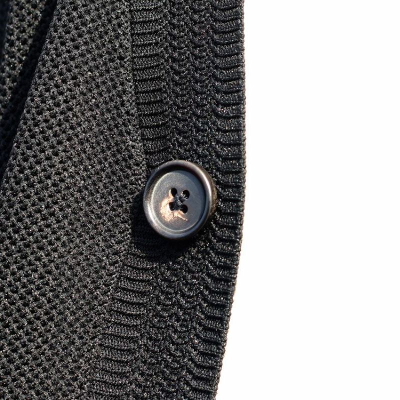 リサイクルポリエステルを使用した機能素材であるECOTECを使用したカーディガン。