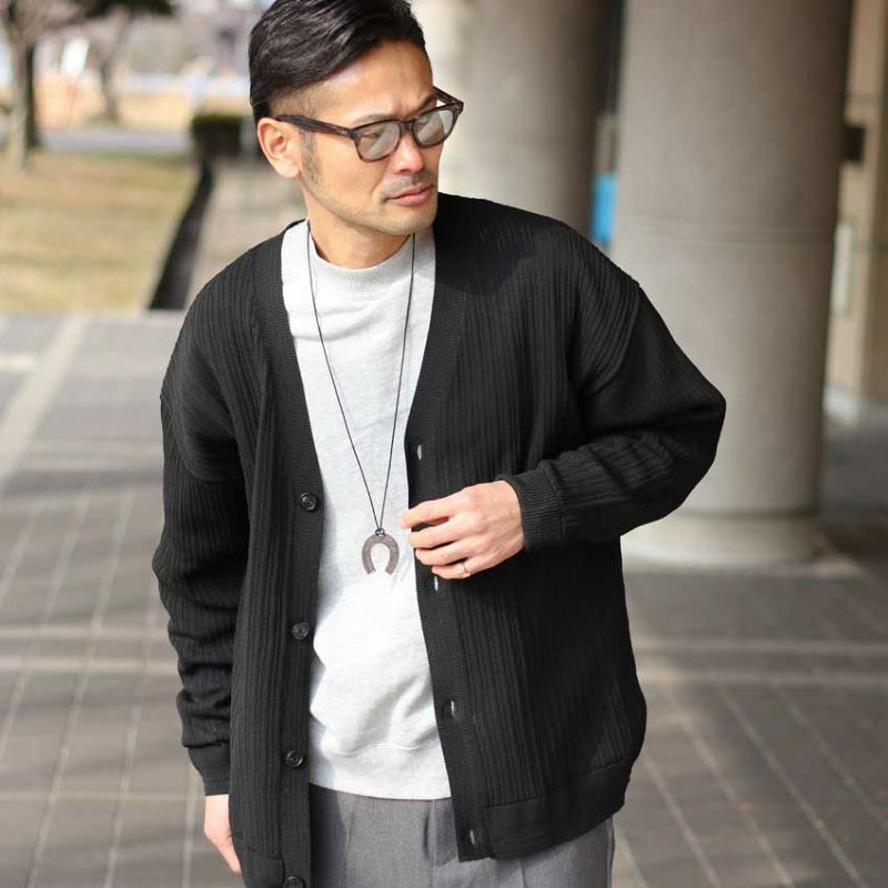 FORTUNA HOMME/フォルトゥナオム ECOTCH OpenWork Knit CD FHCD-0200 カーディガン ニット リブ編み ビッグシルエット オーバーサイズ