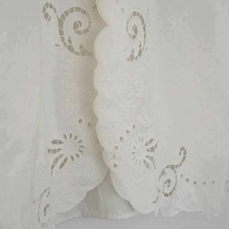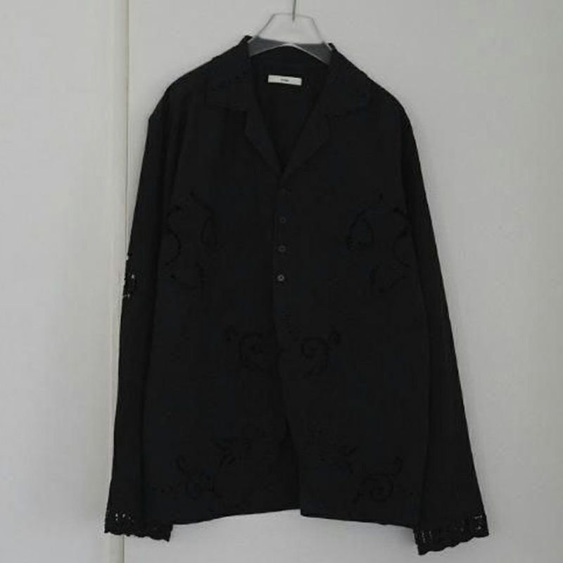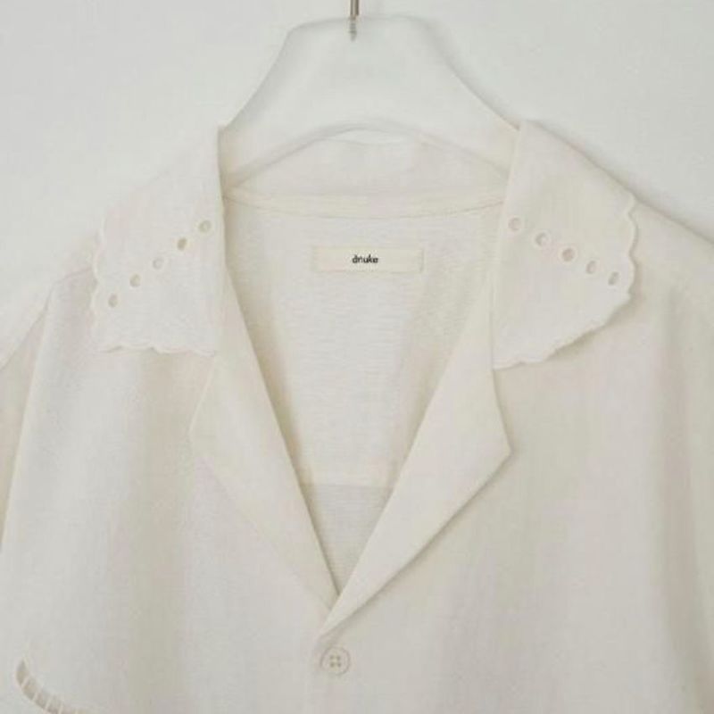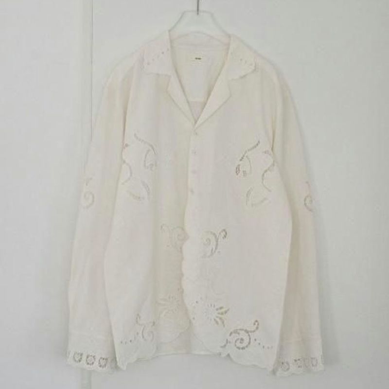 カットワーク刺繍が印象的なインド製の開襟シャツ。
