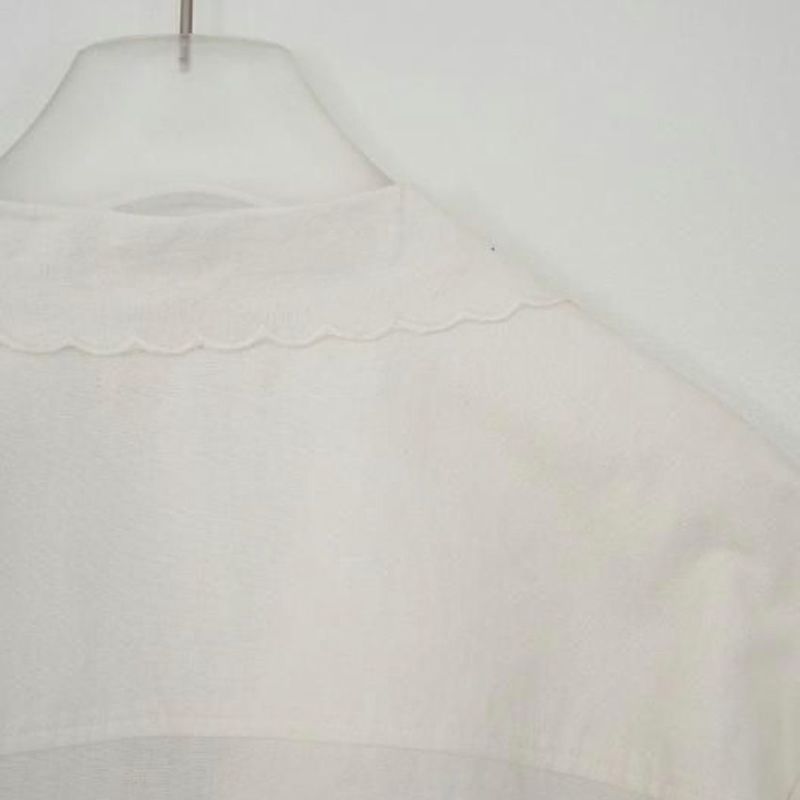 スカラップ刺繍で仕上げた襟と裾もポイントです。