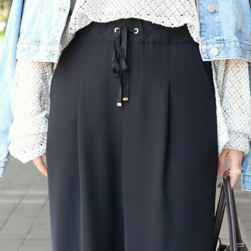 ウエストゴム仕様で圧迫感なく、オフィスor休日コーデのどちらでも活躍♪