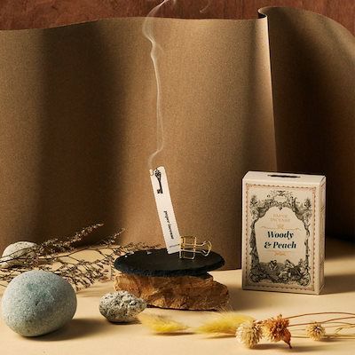 ペーパーには人体と環境に安全な天然パルプを採用。燃焼後、5~6時間、香りがほのかに持続します。