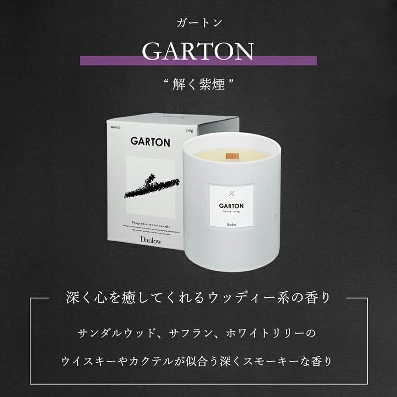 大胆にスモーキーでウッディな重厚感と、優雅な繊細さを密かに感じるガートン。サンダルウッド、カルダモン、サフラン、ホワイトリリーなどが混ざり合い、地下室の樽やウイスキー、シガーのある風情を想起させるフレグランス。