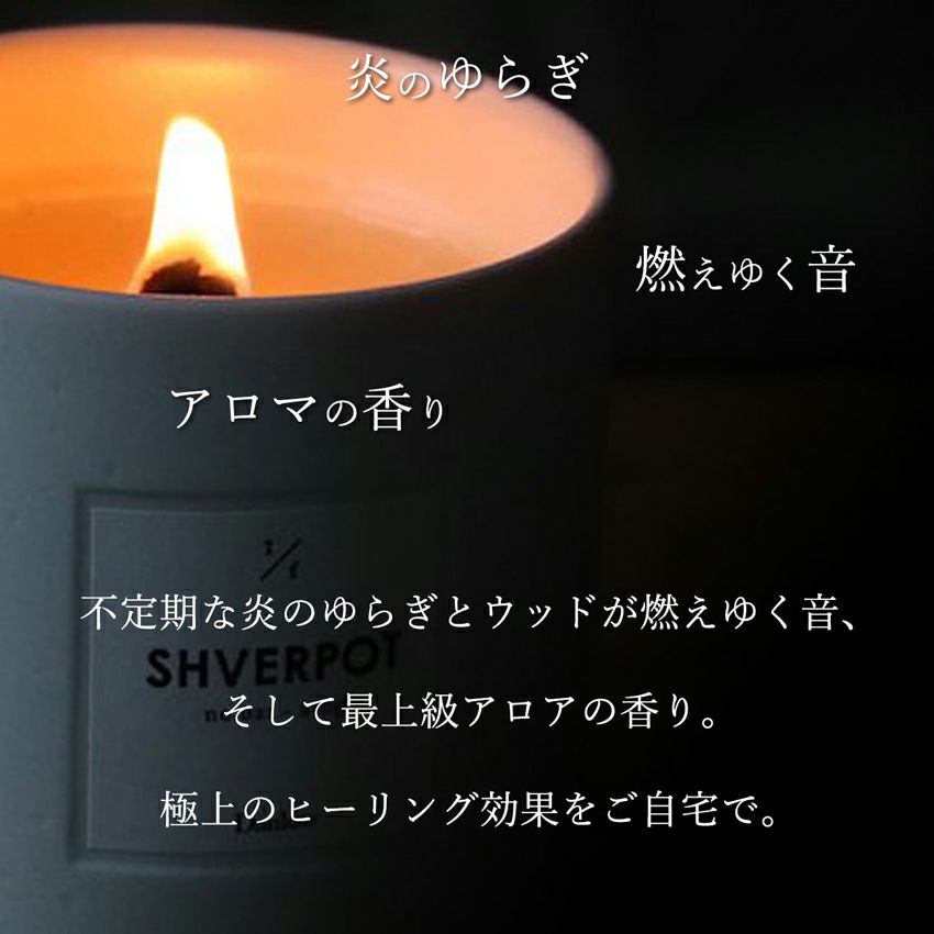 焚き火の持つヒーリング効果は1/fゆらぎと言われ、視覚と聴覚から感じる、一定のようでいて予測できない不定期な揺らぎが人間に心地良い快感を与えている効果です。フレグランスウッドキャンドルにより焚き火と同じ効果をお家でも感じていただけます。