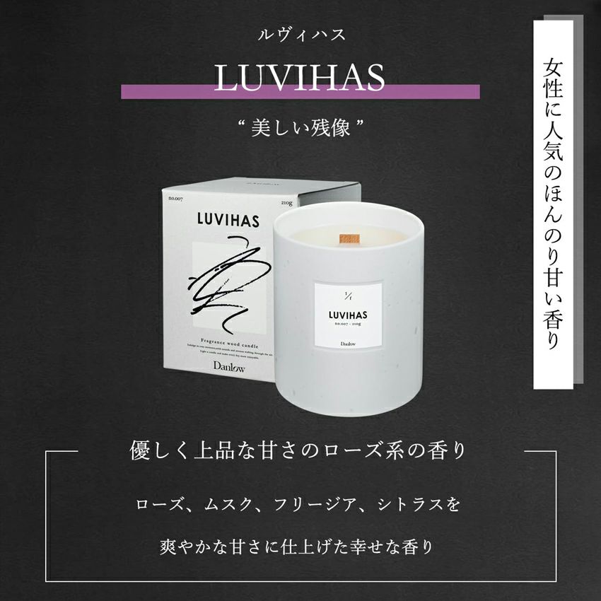 繊細で華麗な第一印象とは裏腹に、美しい残像のように気品高い個性が記憶に残るルヴィハスは、ローズ、ムスク、フリージア、シトラスがゆっくりと重なり合い、朝にも夜にも錯覚する秘密めいた美しさ感じるフレグランス。