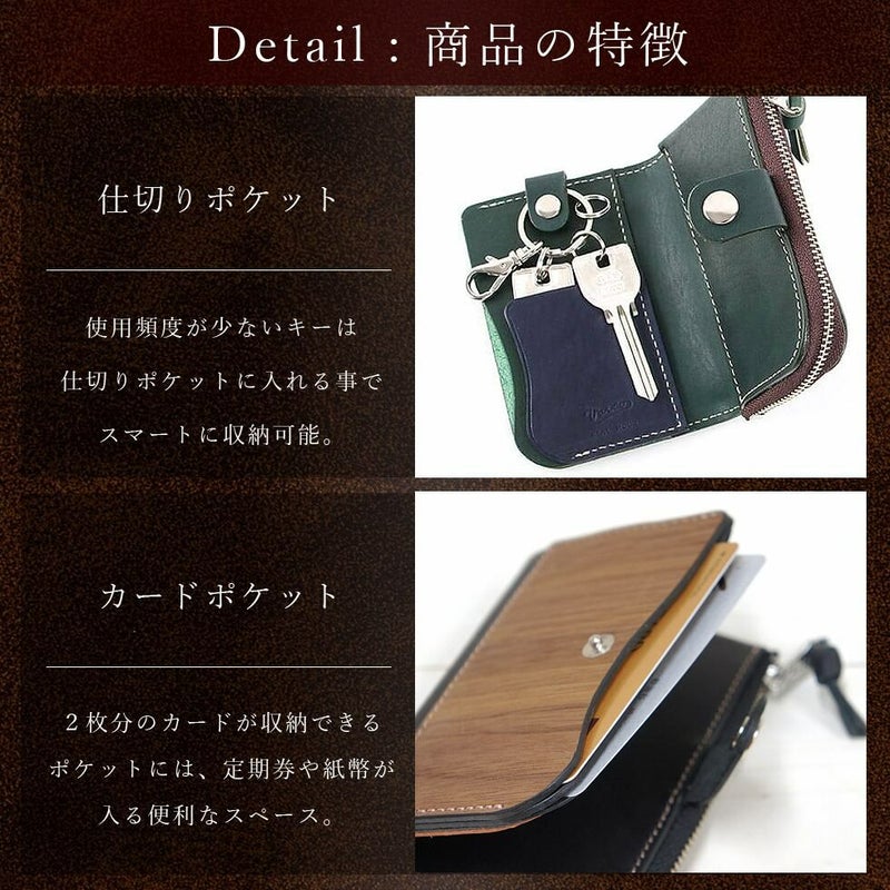 キャッシュレス決済が主流の現在にフィットした、キーケースとミニ財布が一体化した便利アイテム。