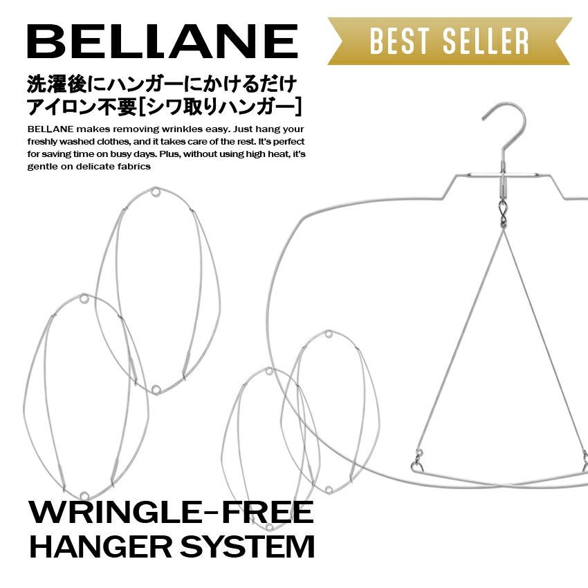 他の画像を見る アイロン不要でハンガーにかけるだけのシワ取り! Bellane ベラーネ シワ取りハンガーセット【ボディー/アーム/ボトムハンガーセット】 アイロン不要 特許取得済み ハンガーにかけるだけ ステンレスで錆びない 素材に優しい 日本製 ¥ 8,250 税込 お気に入りに登録する