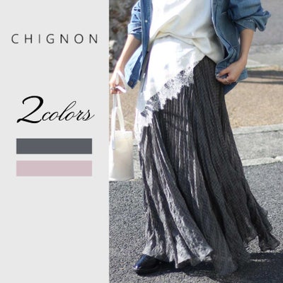 CHIGNON/シニヨン シアーチェックプリーツスカート 2961-029MK マキシ丈 チェック しわ加工 プリーツスカート フレア ウエストゴムのレビューを書く