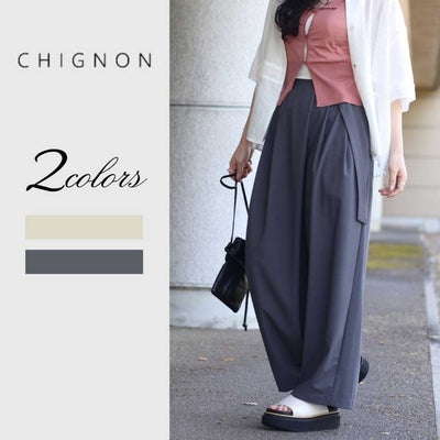 CHIGNON/シニヨン 梳毛調ベルト付ワイドパンツ 3262-334MK ラップ風 ダブルタック スラックス とろみ オケージョンのレビューを書く