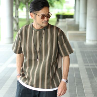 ROARK REVIVAL/ロアークリバイバル "VERTICAL STRIPE" JACQUARD TEE RTJQ1120 デザイントップス 半袖カットソー ジャガード織り ビッグt ストライプのレビューを書く