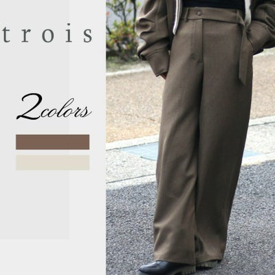 trois/トロワ ウールライクカルゼ バレルワイドパンツ T256-87067 コクーンパンツ ベルトパンツ バレルパンツのレビューを書く
