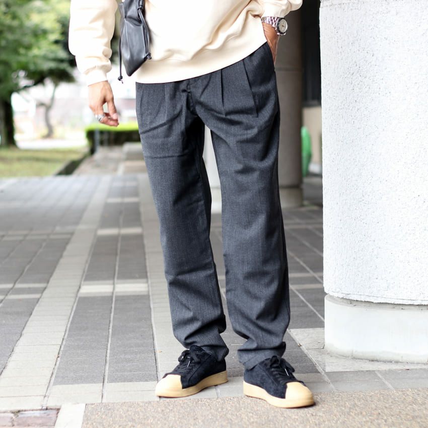 他の画像を見る wax london/ワックスロンドン ラレーシェブロントラウザーワイドテーパードパンツ AW23-TRO-RAL-AYH-CHR AW23-TRO-RAL-AYH-NAT ヘリンボーン スラックス イージーパンツ タックパンツ ツータック ¥ 25,300 税込 在庫切れ カートに入れる お気に入りに登録する (0)