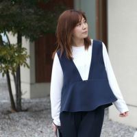 trois/トロワ メッシュ×サテン シャーリングzipベスト T251-83062 ジレ シフォン コクーン ビックシルエット ギャザー
