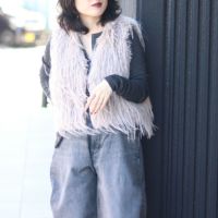 trois/トロワ ロングファー ニットベスト T256-88050 ショート丈 ライトグレー グレー