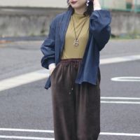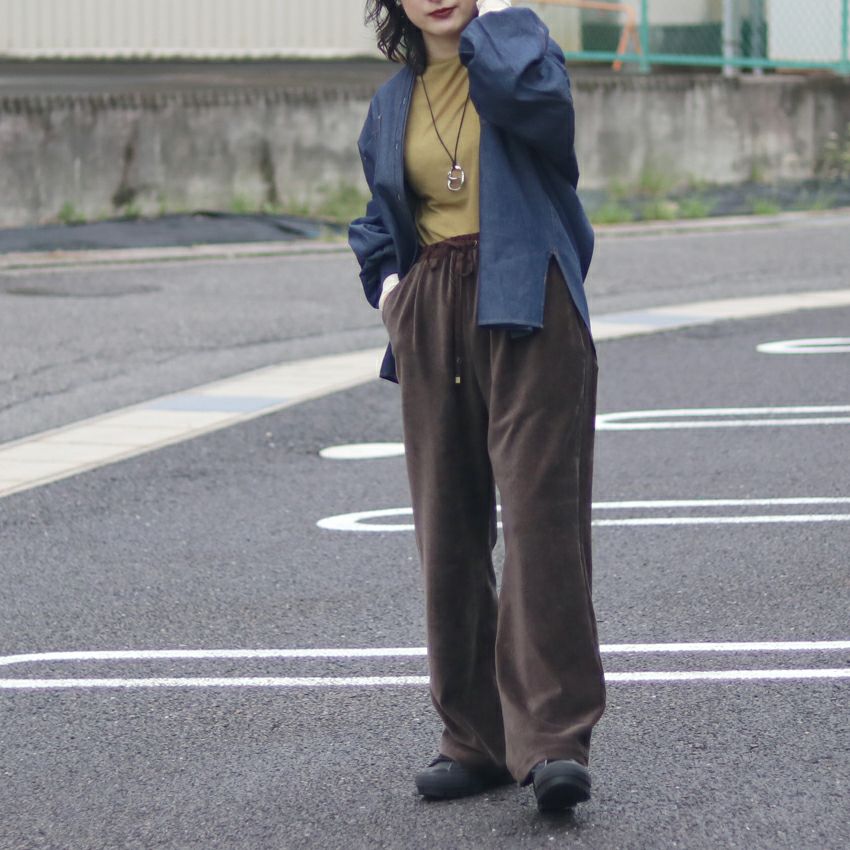 trois/トロワ ベロアセミワイドパンツ T256-87068 ツイル タック ピーチ起毛 光沢 イージーパンツ